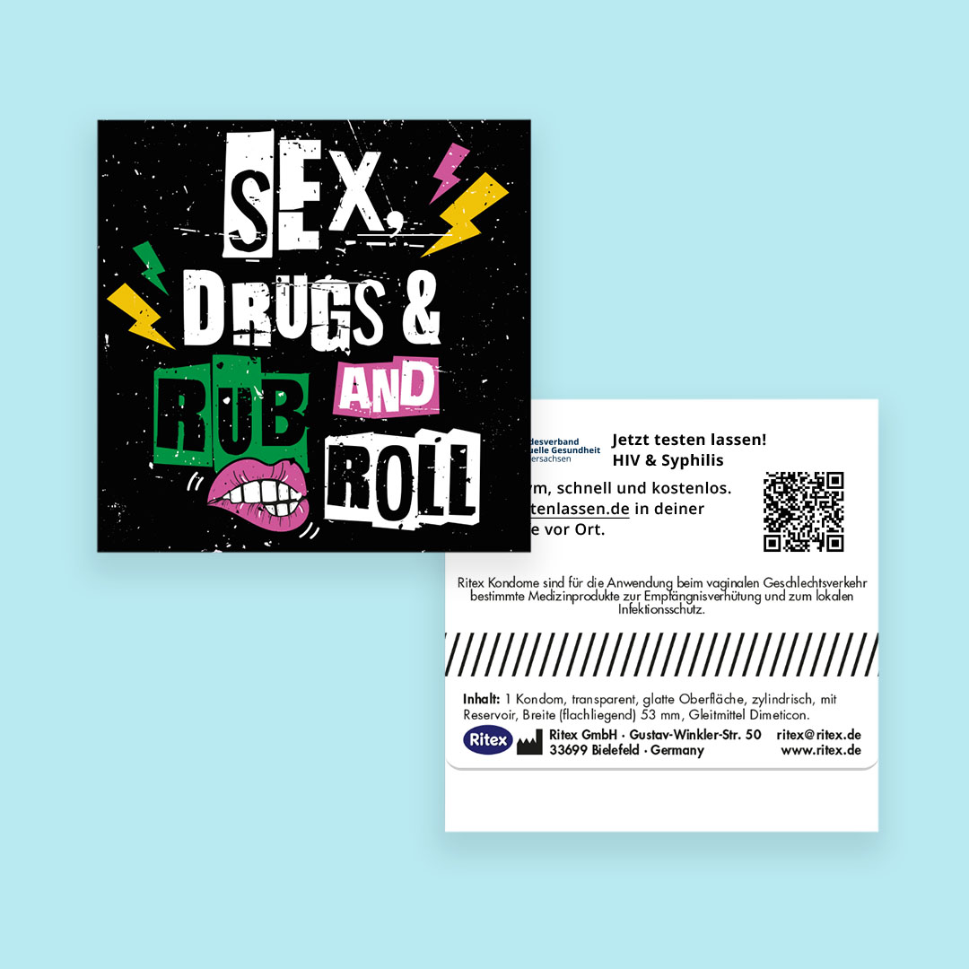 Ein auffälliges, festivalnahes Design der Präventionskampagne des Landesverbandes sexuelle Gesundheit Niedersachsen zum Hurricane Festival. Inspiriert vom alternativen Look des Festivals, wurde die Gestaltung auf Verhütungsmitteln, Merch-Artikeln und digitalen Inhalten umgesetzt.
